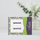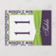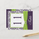 This double-sided lime and purple damask table number postcard matches the wedding invitation shown below. ****PLEASE NOTE that the ribbon and jewels are printed images and are not real. You must change the number 11's to each number that you need, add it to your cart, and then come back and repeat the process with each number that you need. Quantity discounts may apply once you add all the items to your cart. If you have any questions, contact me at niteowlstudio@gmail.com.