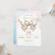 A charming watercolor birthday invitation featuring two dancing geese celebrating twins. The female goose wears a dusty pink crown and bow and holds a bouquet of pink and blue balloons with soft roses, while the male goose wears a blue crown and bow and blows a trumpet bursting joyful confetti. Rendered in soft pastel watercolor with abstract pink and blue background washes, this design creates a sweet vintage nursery mood perfect for a boy-and-girl twins' birthday celebration.