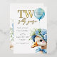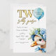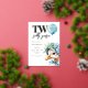 the story of a joyful milestone— very first birthday, a celebration wrapped in love, warmth, and a touch of whimsy. The design centres around a charming goose, lovingly illustrated as if plucked from the pages of a beloved children’s book. He’s not just any goose—He’s “one silly goose,” dressed for a party in a striped hat and floral crown, proudly clutching a Blue balloon. His expression is wide-eyed, innocent, and full of personality—just like a two-year-old discovering the world.