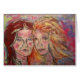 shows two sisters posing for a portrait from original mixed media painting including colour pencil and acrylic !