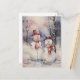 Two Snowmen in Hats and Scarves Christmas Holiday Postcard