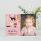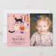 This cute "spooky one" halloween girl's 2nd/second photo birthday invitation features a pink background with Halloween motifs including a black cat, bat, ghosts, pumpkin, candy, broomstick, skeleton, vampire lips, and eyeball. The reverse side features a purple background with spider web patterns. Personalise it for your needs. You can find matching products at my store.