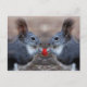 Two squirrels holding a read heart postcard