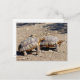 Two sulcata tortoises walking on ground postcard