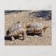 Two African Spurred Tortoises or sulcata tortoises (Centrochelys sulcata) seen from profile and walking on ground