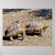 Two African Spurred Tortoises or sulcata tortoises (Centrochelys sulcata) seen from profile and walking on ground