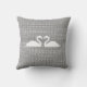 Two swans and wavy pattern in silver grey and white background Throw Pillow.