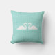 Two swans and wavy pattern in teal turquoise background Throw Pillow.