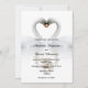 A simple and elegant wedding invitation with love as the theme. Two beautiful swans bending their heads toghether and forming a heart shape. White background. Templates for names and wedding details. Black letters.