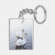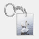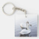 Two Swans Swimming on Tranquil Lake Key Ring