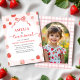 Two Sweet 2nd Bow Strawberry Photo Birthday Invitation