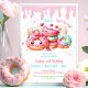 She is two sweet! Invite your guests to your little girl's 2nd Birthday party with this adorable fun doughnut-themed pink invitation featuring cute colourful doughnuts and sprinkles in rainbow colours, with pink frosting dripping. Easily personalise the text and have a blast. - Kate Eden Art