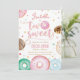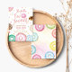 The design features doughnuts with colourful with sprinkles and confetti in pastel colours. It's a perfect 2nd birthday invitation for a girl having doughnut or sweet themed party.