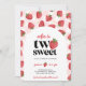 This Strawberry Two Sweet Girl 2nd Birthday Invitation features a pretty red strawberry pattern on a blush pink gingham background and pretty daisies. It is perfect and beautiful for a summer strawberry-themed Girls' Second Birthday celebration.