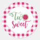 Two Sweet Watermelon 2nd birthday party stickers with melon pink plaid back.