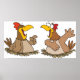 A couple of cartoon style chickens talking to each other. This design looks really effective on these Poster