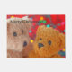 Cute, cuddly stuffed animals with Christmas bokeh in the background