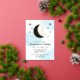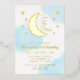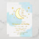 Two the moon! 2nd birthday with gold moon and stars with blue watercolor background