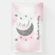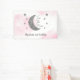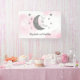 Two the moon! 2nd birthday with silver moon and stars with pink watercolor background