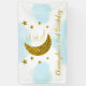 Two the moon! 2nd birthday with gold moon and stars with blue watercolor background