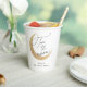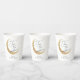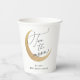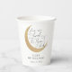 Two the Moon birthday paper cups. Design features faux sparkly gold moon with "two the moonk" in a cute calligraphy text. Personalise with your information or click "Click to customise further" to edit font styles, size and colours.