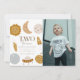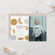 This cute & kawaii boho "two the moon" 2nd/second birthday photo invitation features a white background with the crescent moon and planets with faces in the solar system, a rocket, space/planet explorer, and comet. The reverse side features a light brown background with star patterns. Personalise for your needs. You can find more matching products at my store.