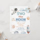 Two the Moon Boy Space 2nd Birthday Invitation. Invitation Sweet outer space or Two the Moon 2nd birthday invitation for a baby Boy featuring a small sun, planet, stars, spaceship and spaceman. This Boy's Two the Moon is ideal for a space themed 2nd birthday party.