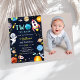 Two The Moon Outer Space Blue 2nd Birthday Party Invitation