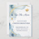 Two The Moon - Embark on a space-themed adventure with our 2nd birthday invitation, perfect for your little girl or boy's special day. The design showcases enchanting watercolor faux gold moon, and shimmering stars, making it an irresistibly cute theme for their second-year celebration. The invitation is set against an abstract watercolor background of light white and dark azure, adorned with golden dot shapes and calligraphic abstractions in gold and azure.