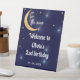 It is sturdy than I expected. Was worried about the material being flimsy but it is not. It is printed on some sort of plastic material. It should serve well at our wedding as long as wind isn’t too bad. Otherwise we will put some paper weights behind it and should be fine.