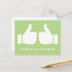 Two Thumbs Up Thanks for your Great Work employee appreciation card. Edit the bottom text line if you like. Two thumbs up icon symbols in white on light green background makes a fun recognition of your employees for their good work and gives a special thanks from management to staff.