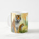 A serene forest bathes in the gentle glow of sunlight, creating a peaceful day. Amidst the lush greenery, tigers with a brave look in their eyes, embodying the wild beauty and strength of nature. The vibrant colours of the trees and the warm sunlight enhance the natural splendour of the scene, making it a captivating depiction of the forest's tranquil yet powerful essence.