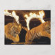 Two tigers leaping through burning rings of fire postcard