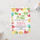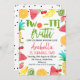 Looking for a colorful fruit themed second birthday invitation? This two-tii frutti design features various fruit around the edges of the invitation and black dot pattern.