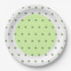Soft green polka dots against lighter green geometric circle centre and white border. Relaxing cool colour tones pattern. Original Design © TamiraZDesigns.