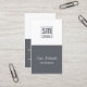 Minimalist design with a grey and white half and half design. A small square contains your initials in small letters and below that is your company name or profession in small type. A generic design for most personal or business name cards.
