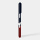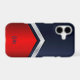 This bold and colorful two tone phone case pairs dark navy blue with red and a silver V shaped stripe. Your monogram is in matching navy blue script at the bottom. Modern and classy for either a man or a woman.