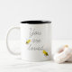 Whether starting the morning with coffee, tea in the afternoon, or a nighttime snack of milk and cookies, this design was created to remind someone that they are loved. The "You are loved." coffee mug features honey bees with a dotted text to resemble buzzing.