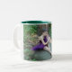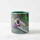 Coffee mug with ballerina in purple two toned mug in white/hunter green.