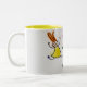 Yellow & white two toned mug with fun kids cartoon design.