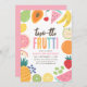 Invite friends and family to your little one's birthday party with this colourful fruit themed invitation.