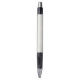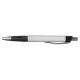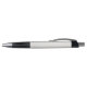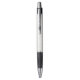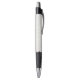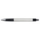 "Two views of a retractable pen against a white background. The pen has a textured, light-colored grip, black accents, and a silver tip and clip. The top image shows the front view; the bottom image shows the side view with a visible clip."