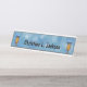 Two Whimsical Owls Colourful Feathers Blue Circles Desk Name Plate