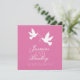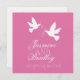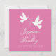 Double-sided simple white dove with two pink ribbons wedding invitation. Designed for a formal wedding hosted by the couple to be wed. Customise with your own details contains RSVP details.