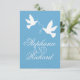 Two white love birds blue formal wedding RSVP Card
