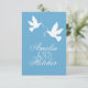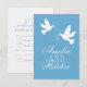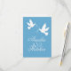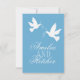 Double-sided simple 2 white love bird / doves with blue ribbons wedding RSVP. Customise with your own details.