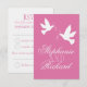 Double-sided simple 2 white love bird / doves with pink ribbons wedding RSVP. Customise with your own details.