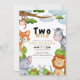 Celebrate birthday of your child with this wonderful 2nd birthday invitation. The design features a group of adorable forest and safari animals with botanical greenery elements. Customise the wording, fonts, and colours to suit your party theme and create unique invitations that match your event perfectly. Check out the collection link on this page for more matching products such as welcome sign, napkins, paper plates, stickers...
