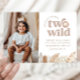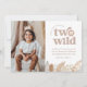 This birthday thank you card features a sweet watercolor lion face with the phrase "thank you for being two wild with me", accented by neutral toned jungle leaves along the bottom. You can add your own photo of the birthday boy or girl too. Perfect for thanking your guests for coming to your safari-themed second birthday celebration!