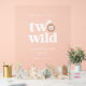 This birthday welcome sign features a sweet watercolor lion face with the phrase "two wild," accented by neutral toned jungle leaves along the bottom. Perfect for a safari-themed second birthday celebration!
